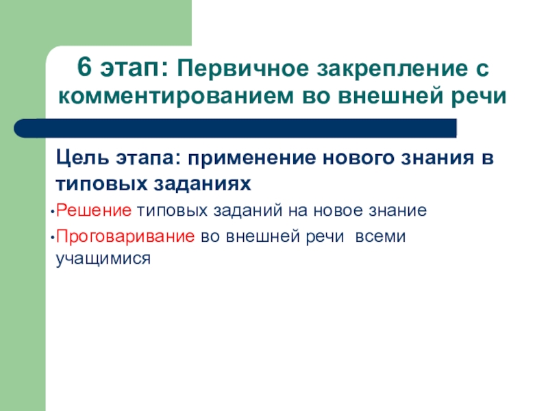 Слайд 146 этап: Первичное закрепление с комментированием во внешней речи