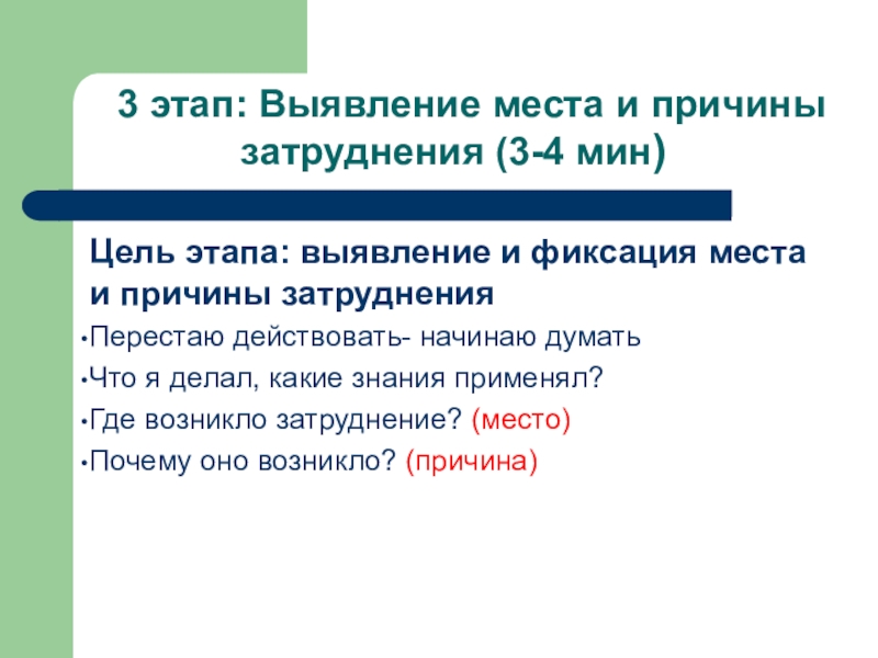 Слайд 11 3 этап: Выявление места и причины затруднения (3-4 мин)
