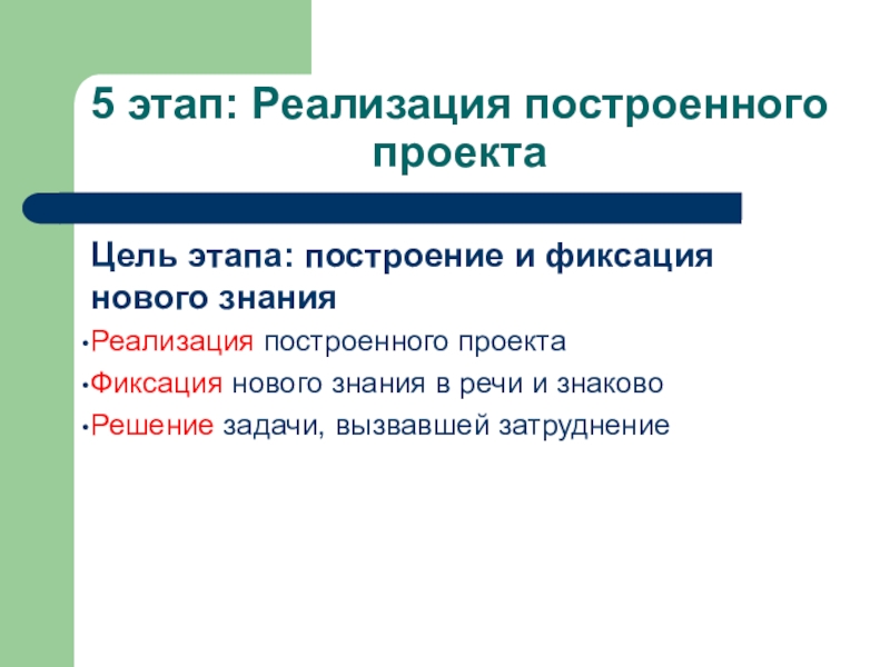 Цель этапа: построение и фиксация нового знания