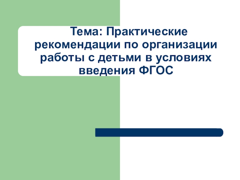 Слайд 1 Тема: Практические рекомендации по организации работы с детьми в условиях