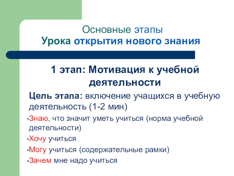 1 этап: Мотивация к учебной