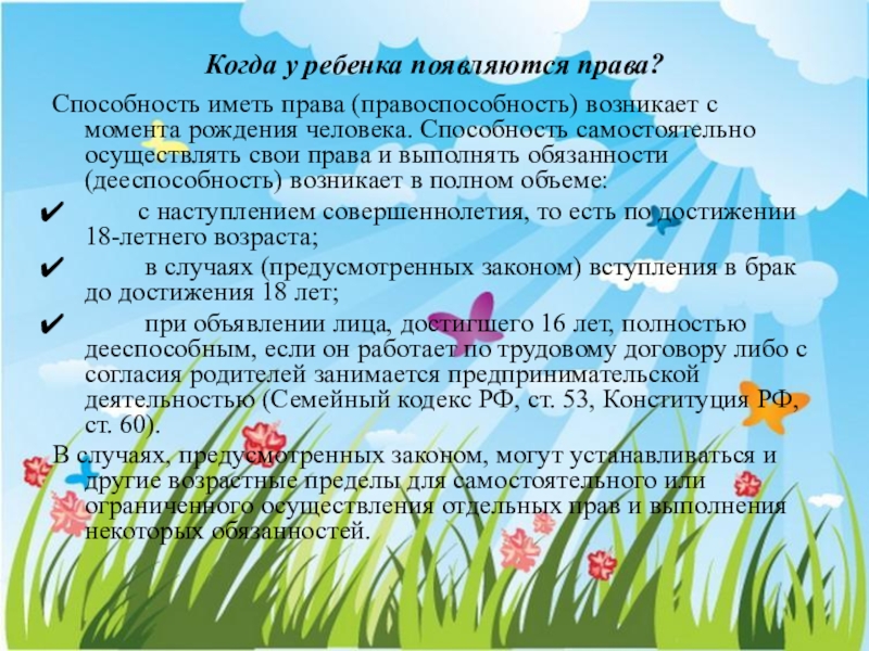 Слайд 5Когда у ребенка появляются права?