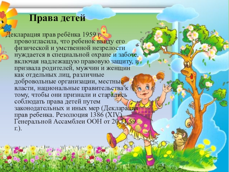 Декларация прав ребёнка 1959 г. провозгласила, что ребенок ввиду его
