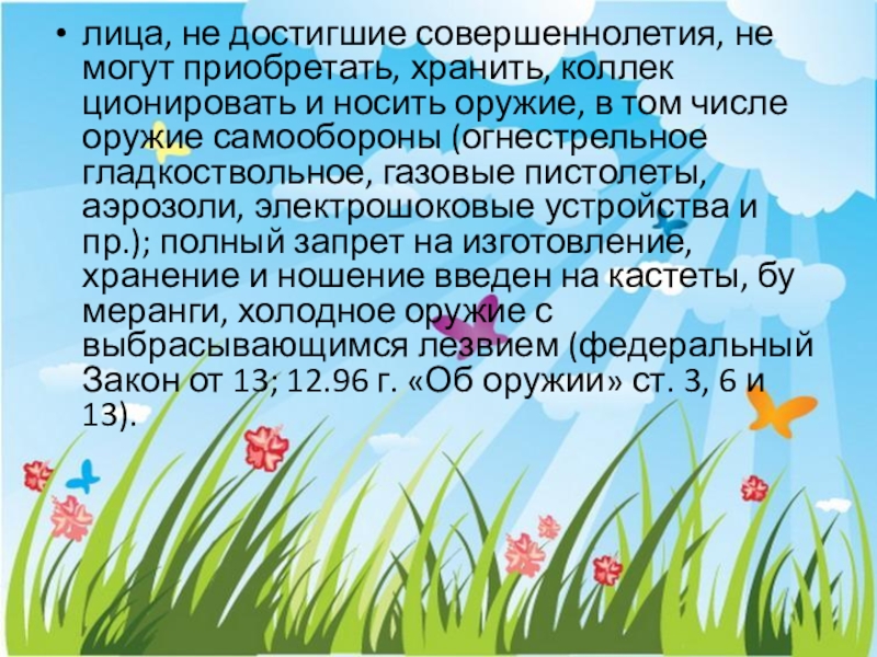 Слайд 20лица, не достигшие совершеннолетия, не могут приобретать, хранить, коллекционировать и носить