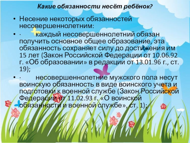 Слайд 17Какие обязанности несёт ребёнок?