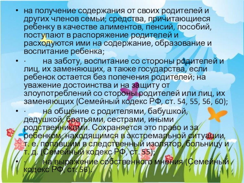 · на выражение собственного мнения (Семейный кодекс РФ, ст. 56).