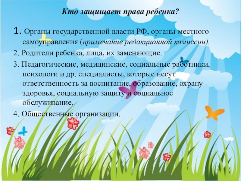 Слайд 4Кто защищает права ребенка?