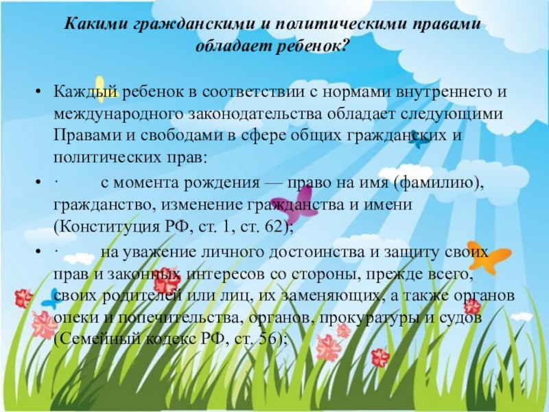 Слайд 6Какими гражданскими и политическими правами обладает ребенок?