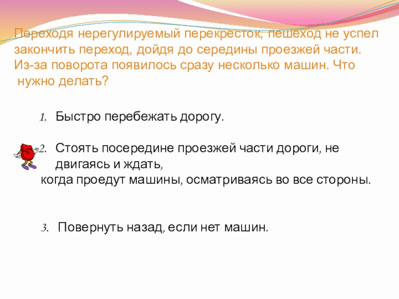 Стоять посередине проезжей части дороги, не двигаясь и ждать,