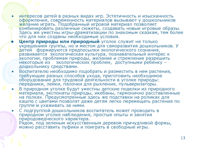 Слайд 13интересов детей в разных видах игр. Эстетичность и изысканность оформления, современность