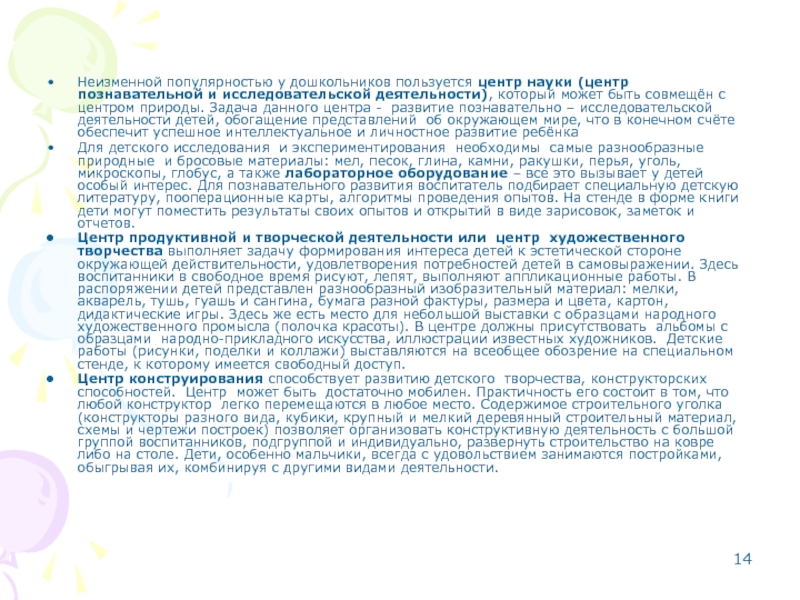 Слайд 14Неизменной популярностью у дошкольников пользуется центр науки (центр познавательной и исследовательской