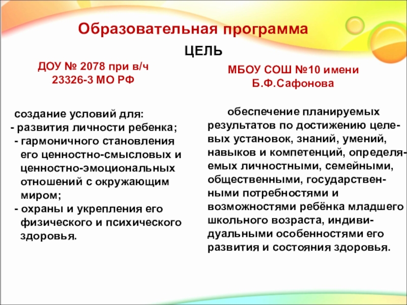 обеспечение планируемых результатов по достижению целе-вых установок, знаний, умений, навыков и компетенций, определя-емых личностными, семейными, общественными, государствен-ными потребностями и возможностями ребёнка младшего школьного возраста, индиви-дуальными особенностями его развития и состояния здоровья.