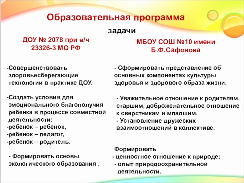 Совершенствовать здоровьесберегающие технологии в практике ДОУ.