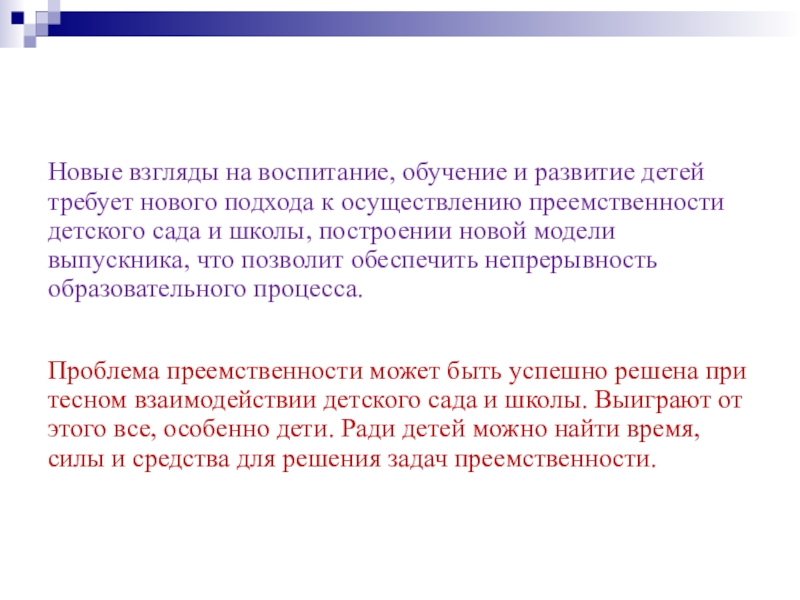 Начальная школа начинается с дошкольного образования.