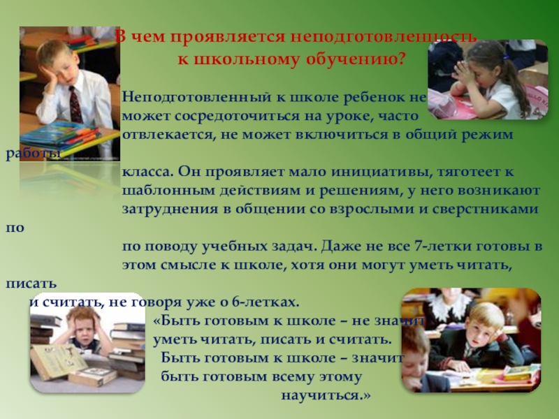 Когда говорят о готовности к школе, обычно подразумевают, что ребенок