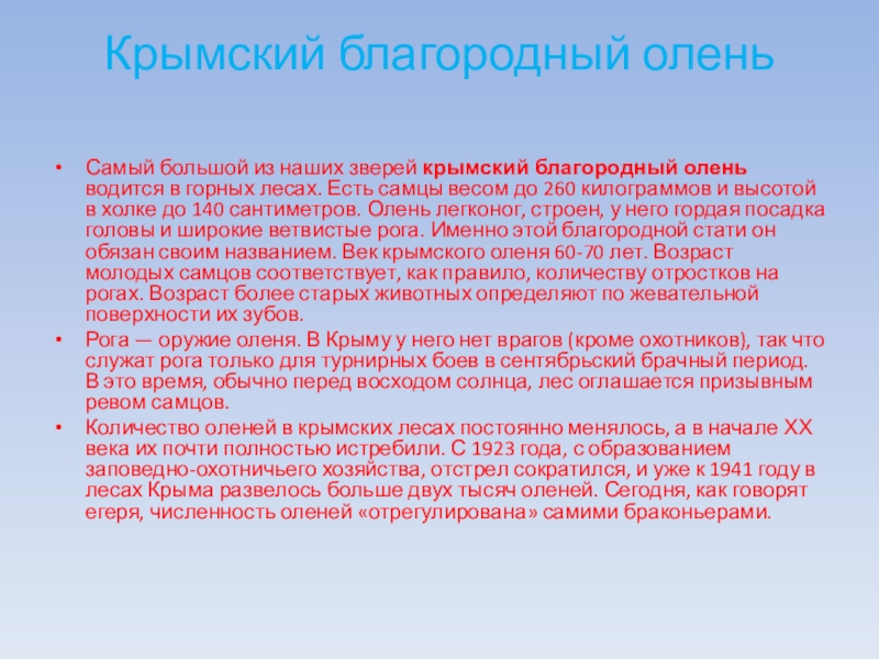 Слайд 8КРЫМСКИЙ БЛАГОРОДНЫЙ ОЛЕНЬ