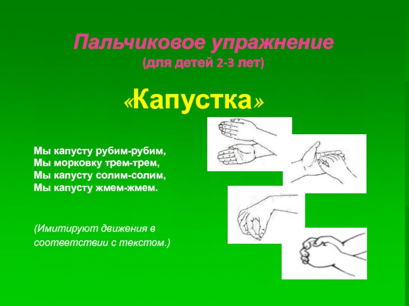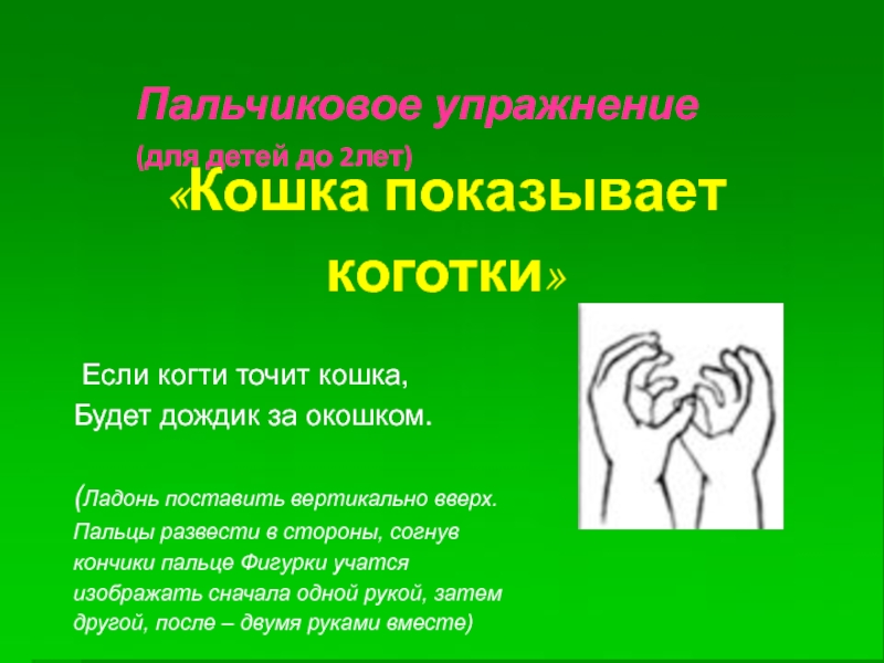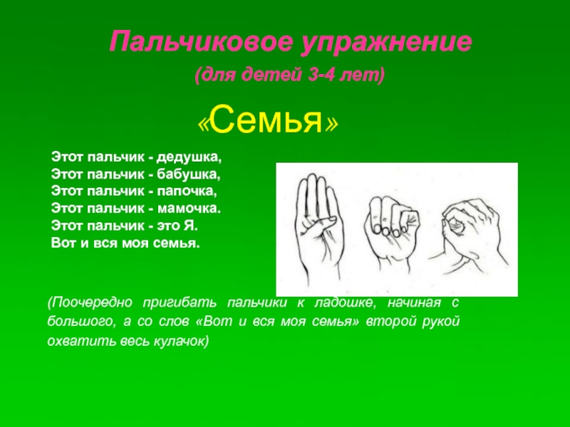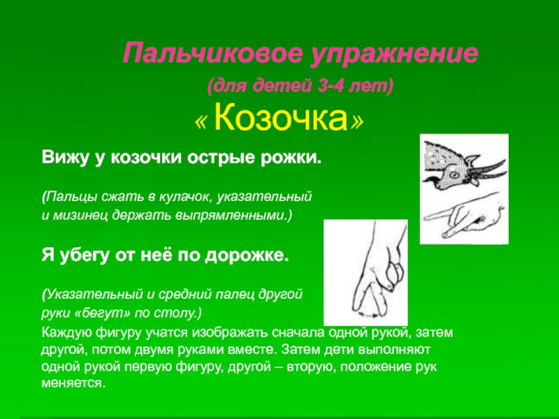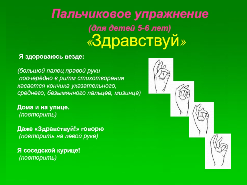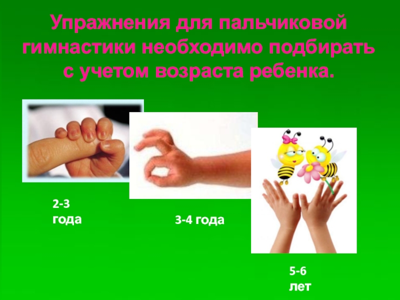 пальцы обеих рук при пальчиковых гимнастиках должны нагружаться одинаково;