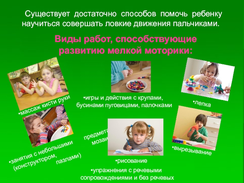 занятия с небольшими предметами (конструктором, мозаикой, пазлами)
