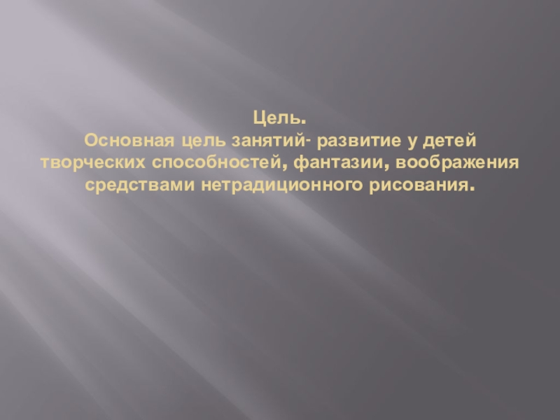 Слайд 3Цель. Основная цель занятий- развитие у детей творческих способностей, фантазии, воображения средствами