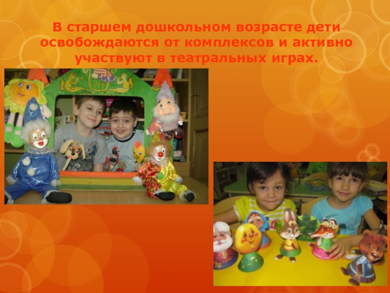 В старшем дошкольном возрасте дети освобождаются от комплексов и активно участвуют в театральных играх.