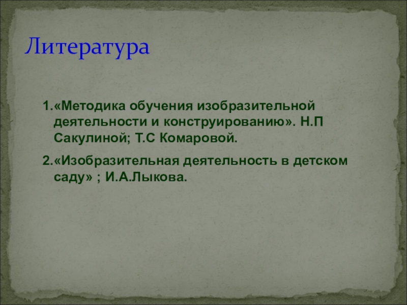 «Методика обучения изобразительной деятельности и конструированию». Н.П Сакулиной; Т.С Комаровой.