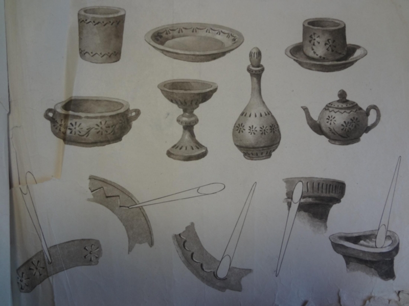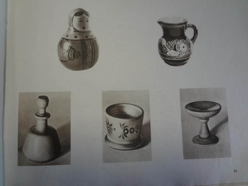 работы, созданию заранее эскиза в качестве рисунка, обучает условно подбирать роспись и форму предмета. К примеру, солонка в форме цветка, крылья жука или птицы расписываются геометрическим или растительным орнаментом.