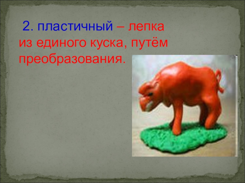 Слайд 9 2. пластичный – лепка из единого куска, путём преобразования.