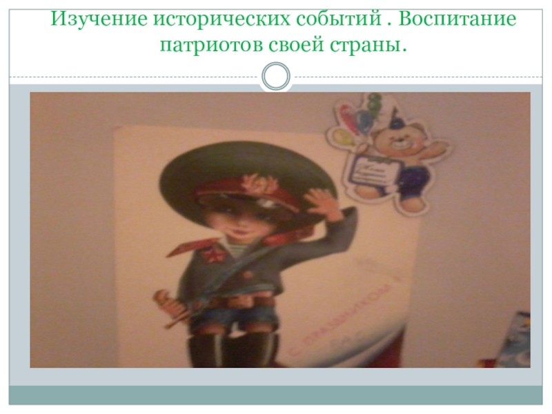 Слайд 25Изучение исторических событий . Воспитание патриотов своей страны.