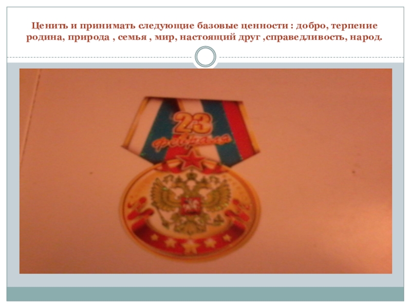 Слайд 26Ценить и принимать следующие базовые ценности : добро, терпение родина, природа