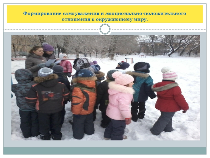 Слайд 4Формирование самоуважения и эмоционально-положительного отношения к окружающему миру.