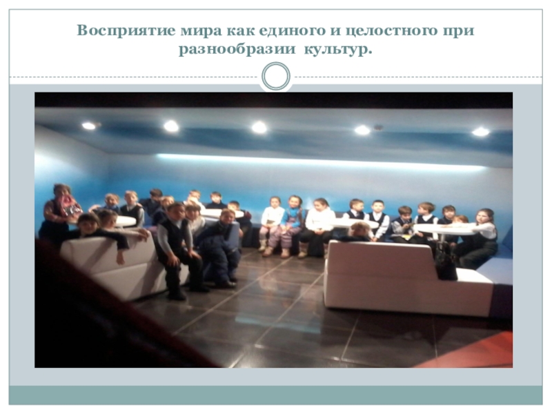 Слайд 15Восприятие мира как единого и целостного при разнообразии культур.