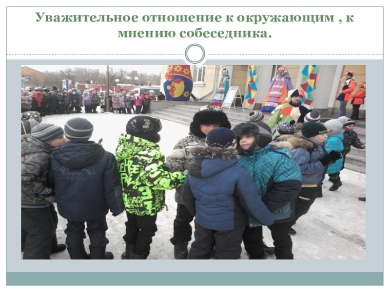 Слайд 20 Уважительное отношение к окружающим , к мнению собеседника.