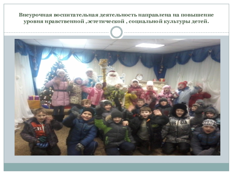 Слайд 34Внеурочная воспитательная деятельность направлена на повышение уровня нравственной ,эстетической , социальной