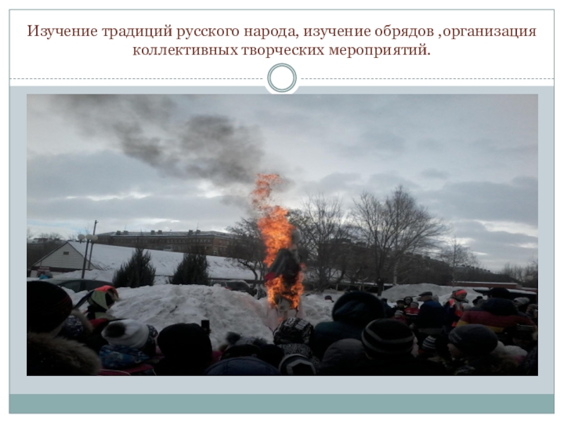 Слайд 23Изучение традиций русского народа, изучение обрядов ,организация коллективных творческих мероприятий.