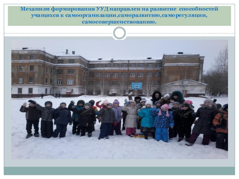 Слайд 2Механизм формирования УУД направлен на развитие способностей учащихся к самоорганизации,саморазвитию,саморегуляции,самосовершенствованию.