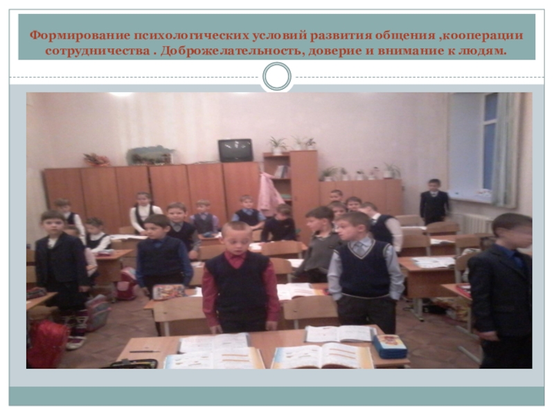 Слайд 7Формирование психологических условий развития общения ,кооперации сотрудничества . Доброжелательность, доверие и
