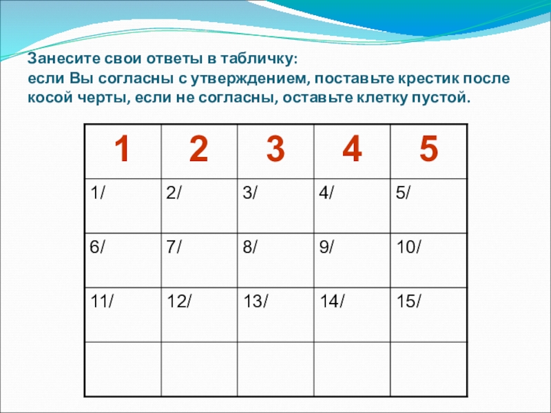 крестик после косой черты, если не согласны, оставьте клетку пустой.