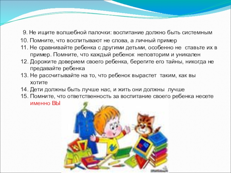 15. Помните, что ответственность за воспитание своего ребенка несете