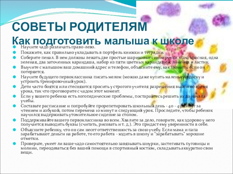 Слайд 17СОВЕТЫ РОДИТЕЛЯМ