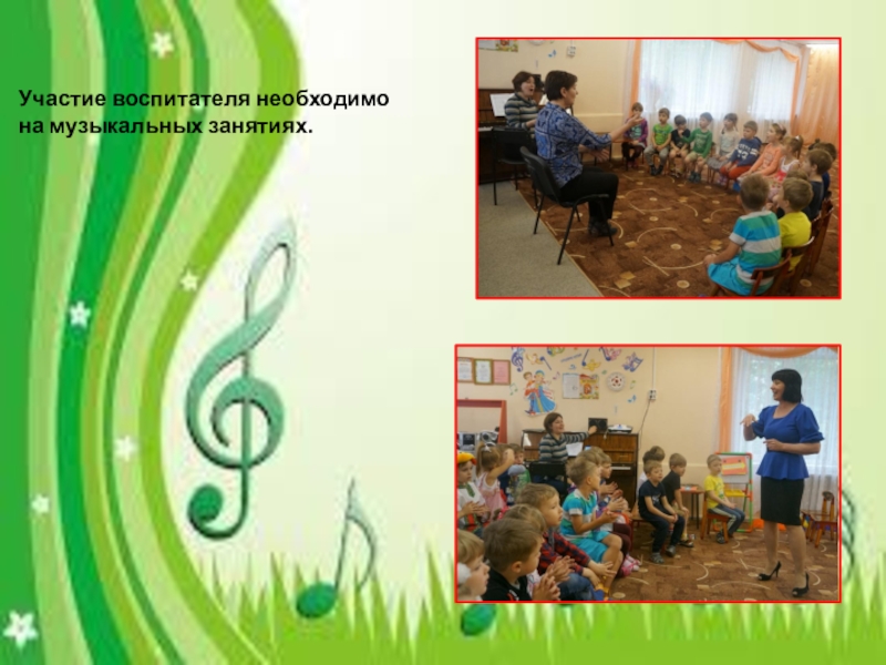 Участие воспитателя необходимона музыкальных занятиях.
