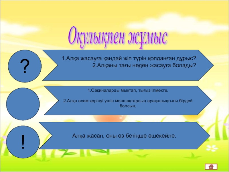 “Кәмпит салатын ыдыс жасау”,”Түймелерден жасалған моншақ”.