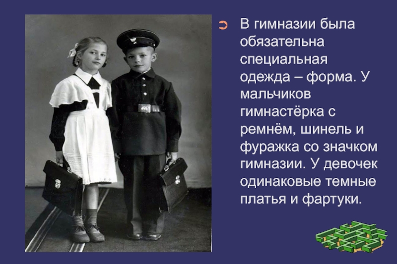 Слайд 6В гимназии была обязательна специальная одежда – форма. У мальчиков гимнастёрка
