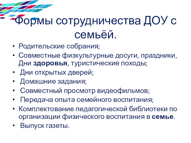 Слайд 4Формы сотрудничества ДОУ с семьёй.