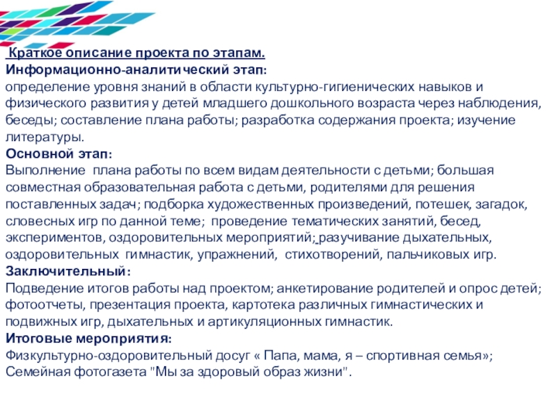 Слайд 10 Краткое описание проекта по этапам.