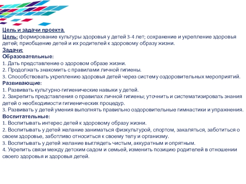 и укрепление здоровья детей; приобщение детей и их родителей к здоровому образу жизни.