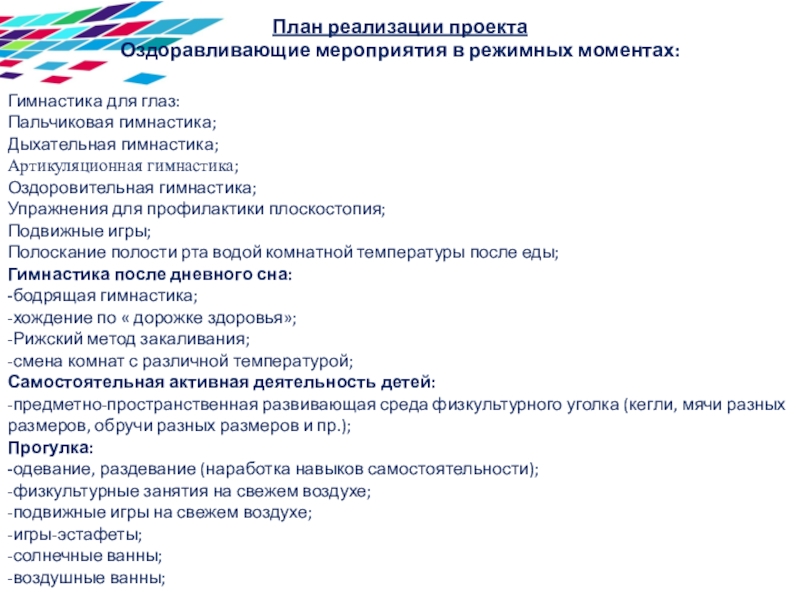 Оздоравливающие мероприятия в режимных моментах: