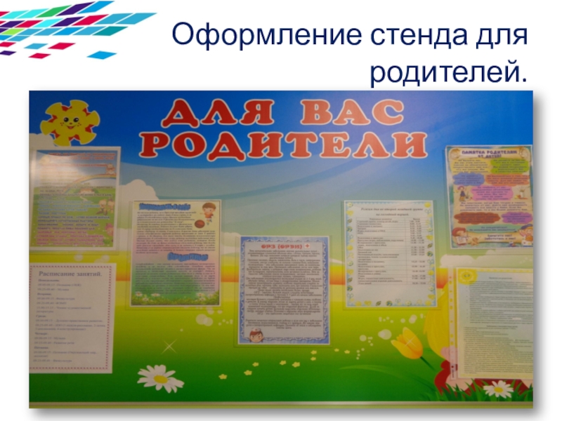 Слайд 16 Оформление стенда для родителей.