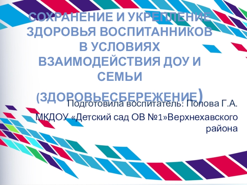 Слайд 1Сохранение и укрепление здоровья воспитанников в условиях взаимодействия ДОУ и семьи