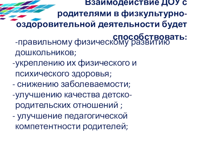 в физкультурно-оздоровительной деятельности будет способствовать: