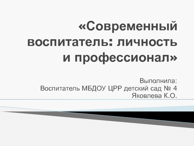 Слайд 1«Современный воспитатель: личность и профессионал»
